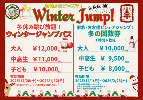 日本体操協会公認トランポリン普及指導員資格を持ったスタッフが常駐していますので、初心者から上級者まで安心安全にご利用いただけます。ルールを守って楽しくご利用ください。
